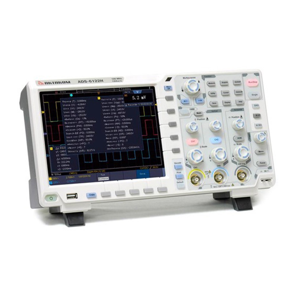 Осциллограф ADS-6322 имеет два канала с полосой пропускания до 300 МГц. Как и все осциллографы серии ADS-6000 данная модель имеет возможность расширения функциональности и технических возможностей за счет дополнительных опций, таких как: сенсорный дисплей, VGA выход, WiFi, батарейное питание, декодирование сигналов последовательных шин, встроенный генератор сигналов, цифровой мультиметр и ряда других.